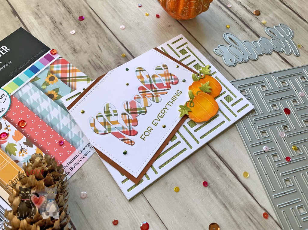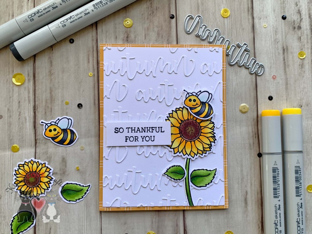 Hello friends. There are still a few more weeks left of Fall and even though I’ve been knee deep in Christmas card making, I wanted to make some more Fall cards. I brought out some Honey Bee Stamps stamps and dies for this one. An easy way to make a dimensional background without having to emboss is to use diecuts.