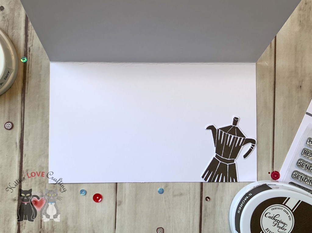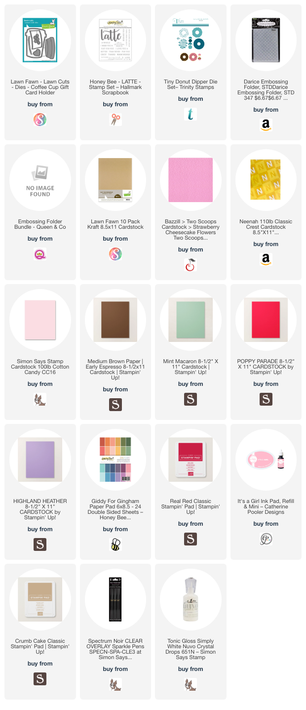 I stamped the sentiment directly onto the coffee cup lid. I used Stampin’ Up! Crumb Cake Ink along with Honey Bee LATTE and Sugar Pea Designs Espresso Yourself (retired) Stamp Sets.