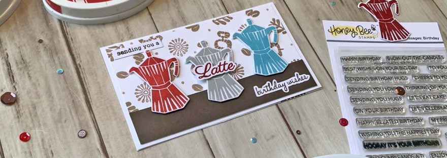 Hello friends. Here’s a quick and easy coffee-themed birthday card using older stamp sets from my stash. I love the modern graphic style of this coffee set!