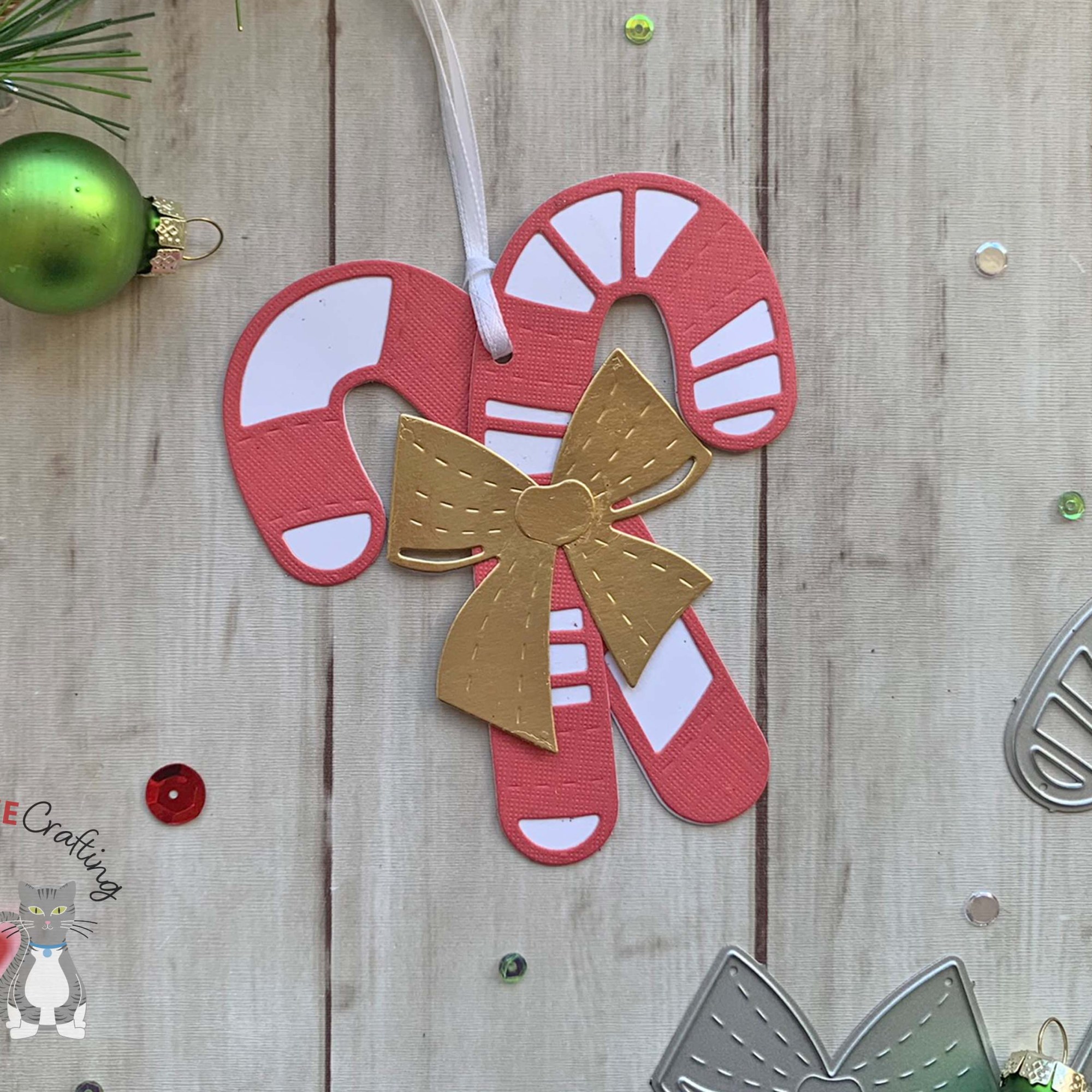 Hello friends. Need some quick cute holiday tags or tree ornaments?!? The Catherine Pooler Designs Candy Cane Christmas Dies is a great die set to create those! Let’s see how easy it was to make these.