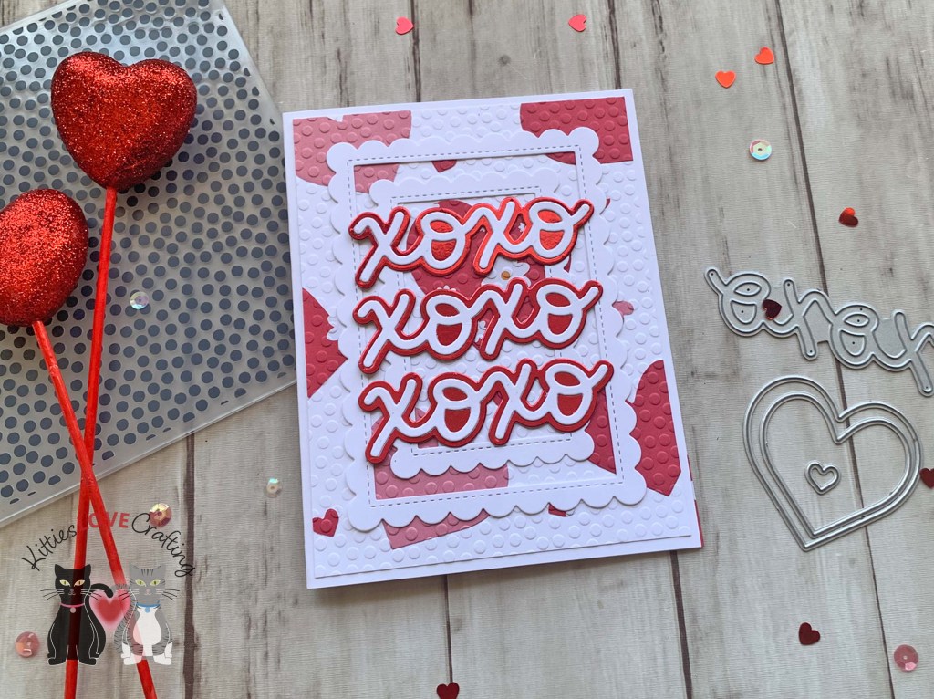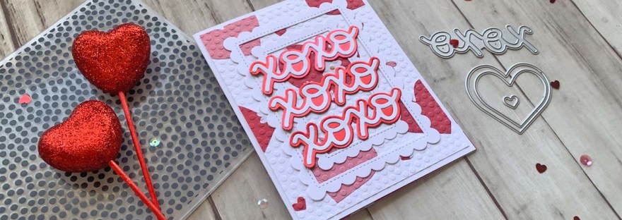 Hello friends. Here’s an easy way to create a textured pattern paper background when you don’t have any pattern paper. I used a heart die with various papers and an embossing folder to create this background. This card also requires no stamping and uses minimal supplies! Let’s see how easy this was to create.