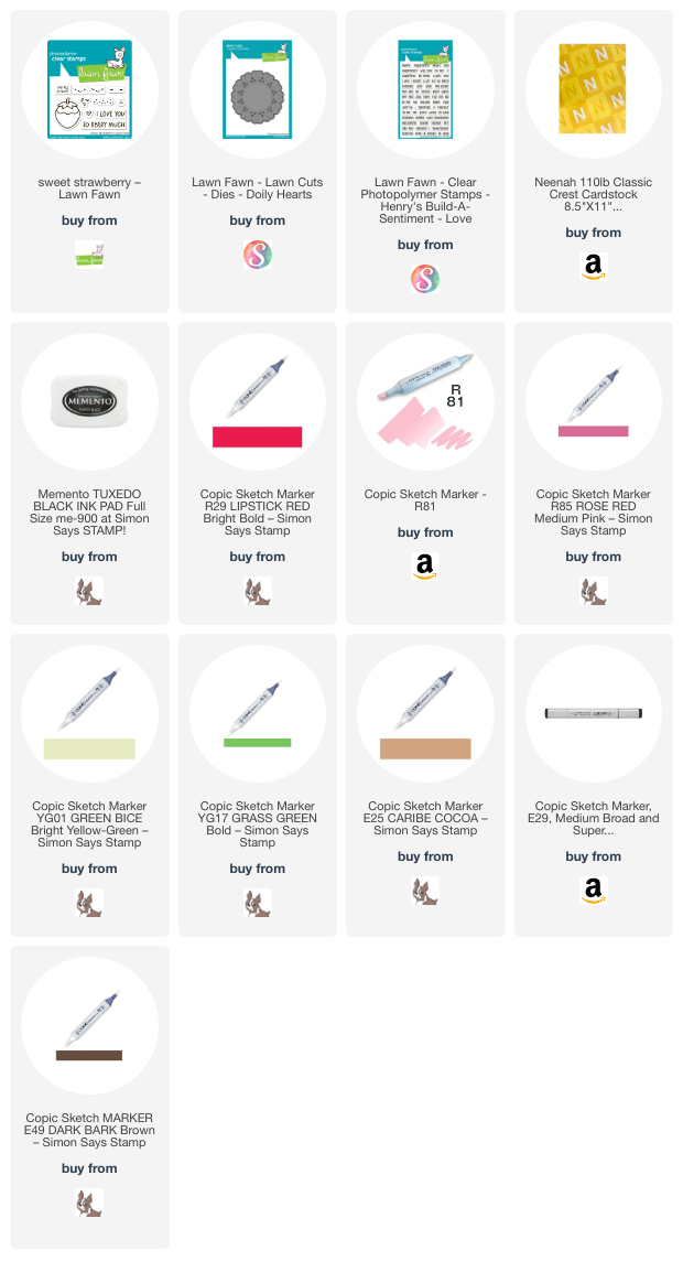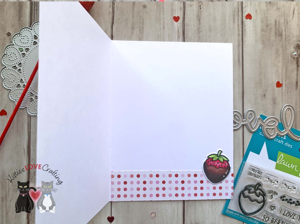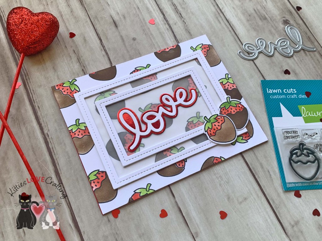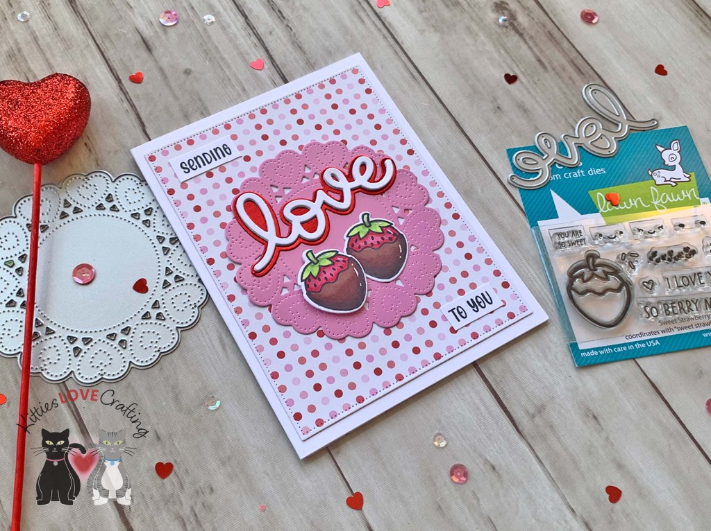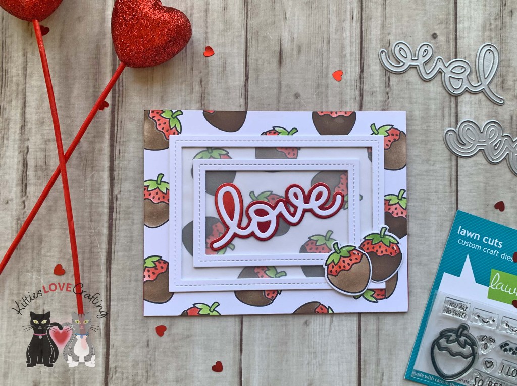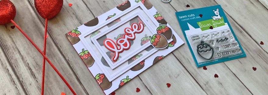 Hello friends. If you need a quick and simple card for this Valentine’s Day, check out this card! I combined the Lawn Fawn’s Sweet Strawberry and Scripty Love Dies to create this sweet card. Even with the coloring it didn’t take long to make.