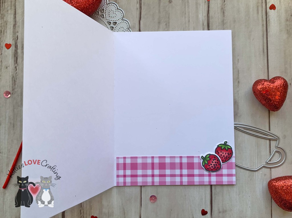 On the inside of the card I cut two strips of CP From the Kitchen 6 x 6 Patterned Paper to 1 x 4-1/4″ and 1-1/8 and 4-1/4″.