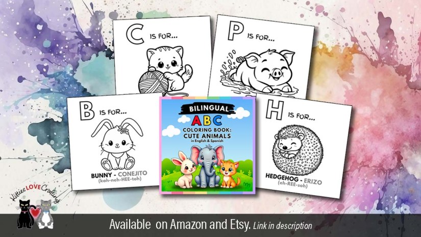 These books are ABC coloring books featuring cute animals. It’s a fun way for young children to learn their alphabet. There is a bilingual version which teaches kids to learn Spanish as well while having fun coloring the adorable animals! The paperback coloring books feature 26 8.5 x 8.5 pages of adorable animals to color!