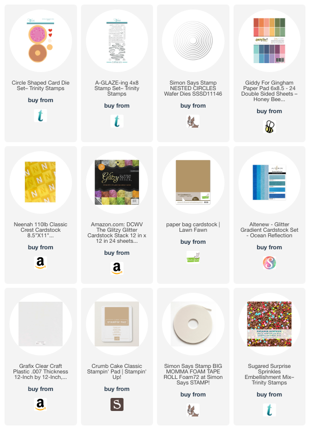 Hello friends. Here is a very easy and quick shaker Birthday card featuring Trinity Stamps new Circle Shaped Card Die Set as well as the A-GLAZE-ing 4×8 Stamp Set. I love how all fun sparkly shaker bits look inside this card!