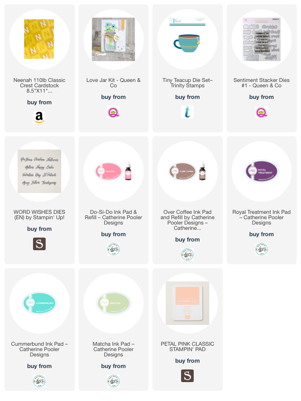 Hello friends. I realize this is kinda late but I still wanted to share this cute Mother’s Day card using the Trinity Stamps Tiny Teacup dies. I combined it was some older stamps and dies from Queen & Company as well as Catherine Pooler dies.