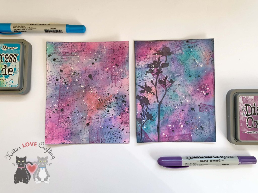 Hello friends. I had some fun playing with my distress inks and other products and created several backgrounds. Sometimes itโs nice just to play with mediums and not think too much. I love distress inks because they create cool effects when water or other mediums are combined with them. I ended up with 6 backgrounds I will later turn into cards. Stay tuned for that postโฆ