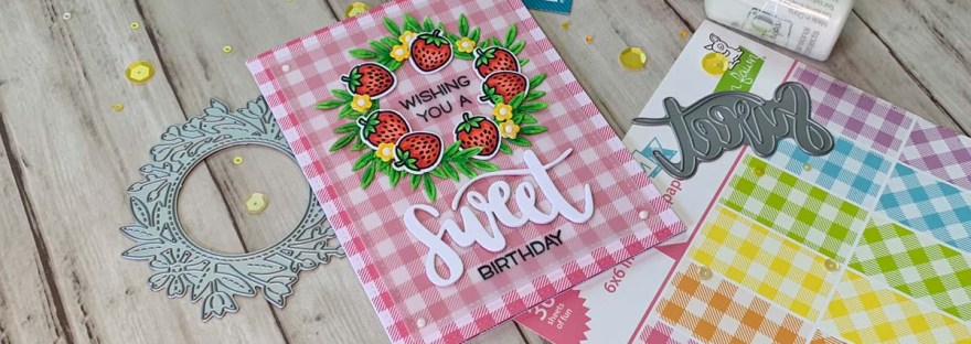 Hi friends. I love making wreath cards so for this one I made a strawberry wreath combining the Lawn Fawn Magic Iris Floral Wreath Add-on with the Lawn Fawn How You Bean Strawberries Add-on stampset and dies.