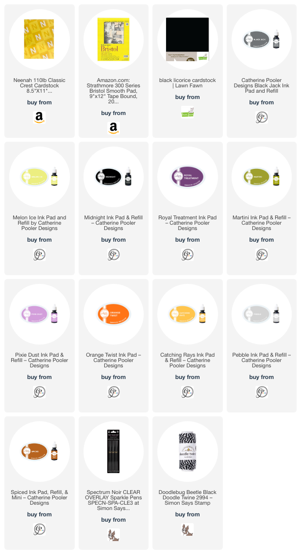I stamped the images from the Catherine Pooler Designs Halloween Mug Shots Stampset onto Strathmore 300 Series Smooth Bristol Paper with Catherine Pooler Midnight Ink and colored it with a blender pen and more inks. I used Melon Ice, Martini and Black Jack for the mug, Pixie Dust and Catching Rays for the inside of the mug and tiny circles and stars on the mug, and Pebble, Black Jack, Catching Rays and Spice inks for foam and broom.
