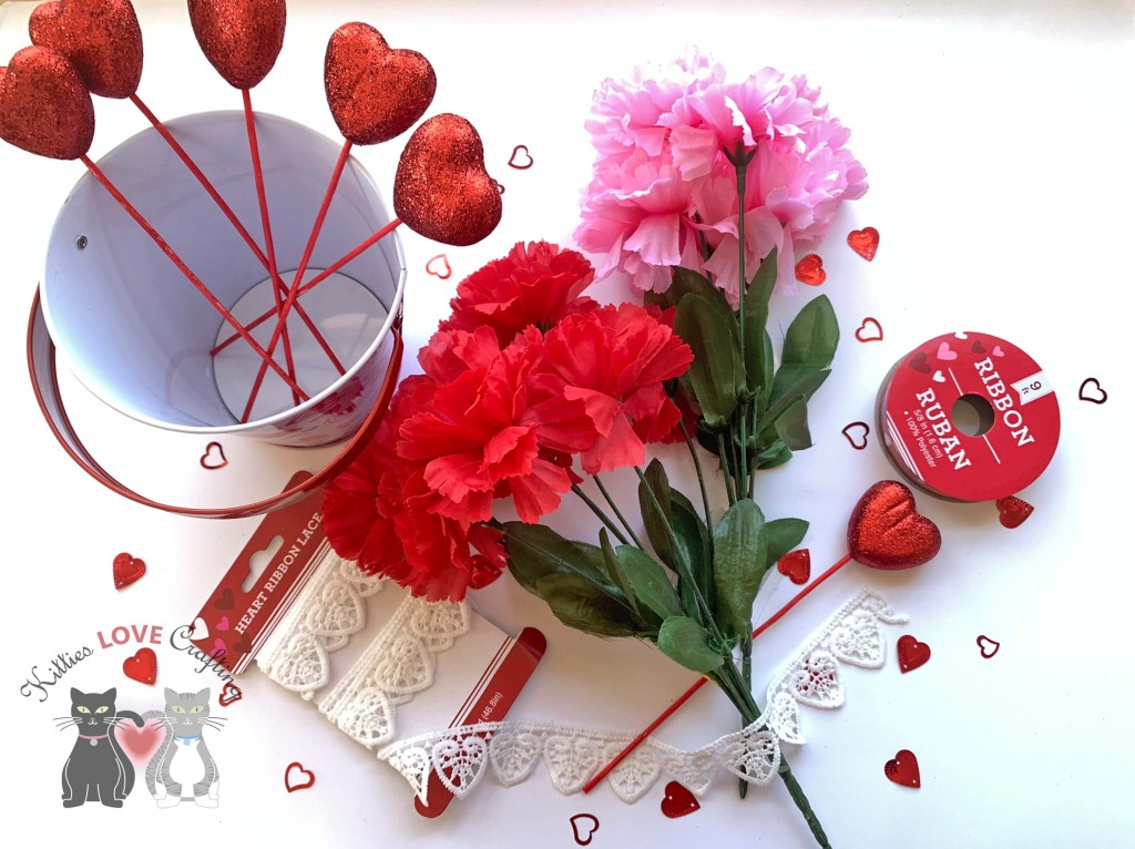 Hello friends. Valentine’s Day is next month and we all want to make cute decor and gifts, right? Times are tough right now, everything is ridiculously expensive so why not save some money on crafts?!? I made this cute floral decor piece using only Dollar Tree products.