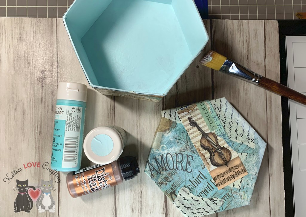 Hello friends and Happy New Year! My first post of 2020 is this cute distressed jewelry box. I made something similar from paper years ago but it was time for a new sturdier box since the original is falling apart from so much use. This jewelry box will just hold some watches and rings and I wear daily but like to remove before bed. This way they can be safely tucked away out of reach of the kitties. Sometimes the kitties are naughty an play with things they should not so itโs my responsibility to make sure they donโt have access to those things.
