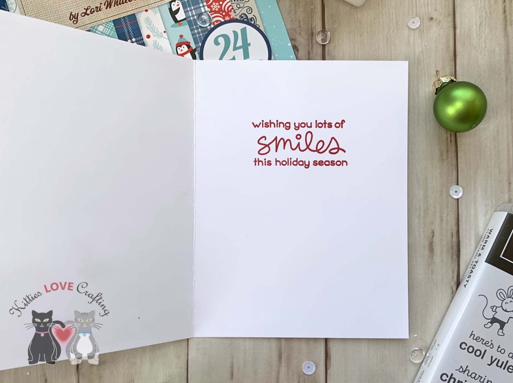 I stamped the sentiment from the Stampin’ Up! Joy to the World Paper Pumpkin Stampset (retired) directly onto the card with Catherine Pooler Designs Black Jack Ink.