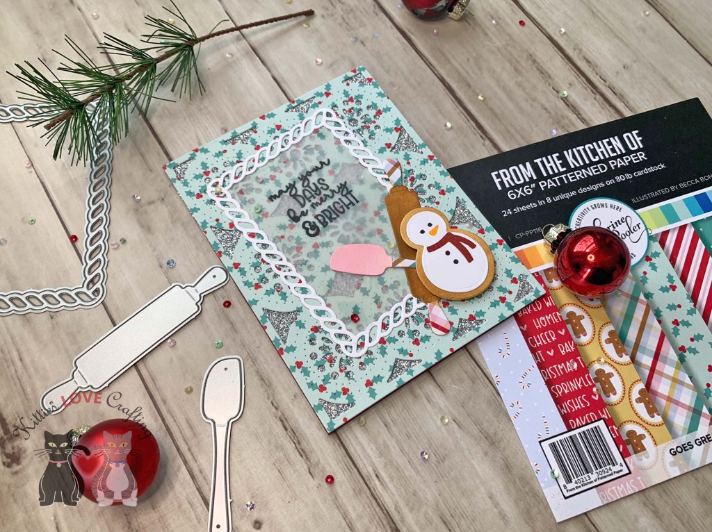 On the inside of the card I cut a piece of Neenah 100lb Classic Crest Cardstock 8.5 X 11″ to 4 x 5-1/4″ and stamped part of the sentiment from Lawn Fawn Henry’s Build-A-Sentiment – Winter and Lawn Fawn Henry’s Build-A-Sentiment – Love using CP Lime Rickey. Then die cut the word ‘Berry’ from Stampin’ Up! Real Red 8-1/2″ X 11″ Cardstock using the Lawn Fawn – Henry’s ABCs.