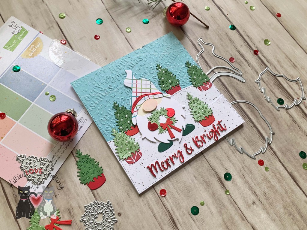Hello friends. Here’s a quick and simple Holiday card that was created entirely from dies. No stamping required! This card combines Catherine Pooler Designs, Lawn Fawn and Queen & Company products.
