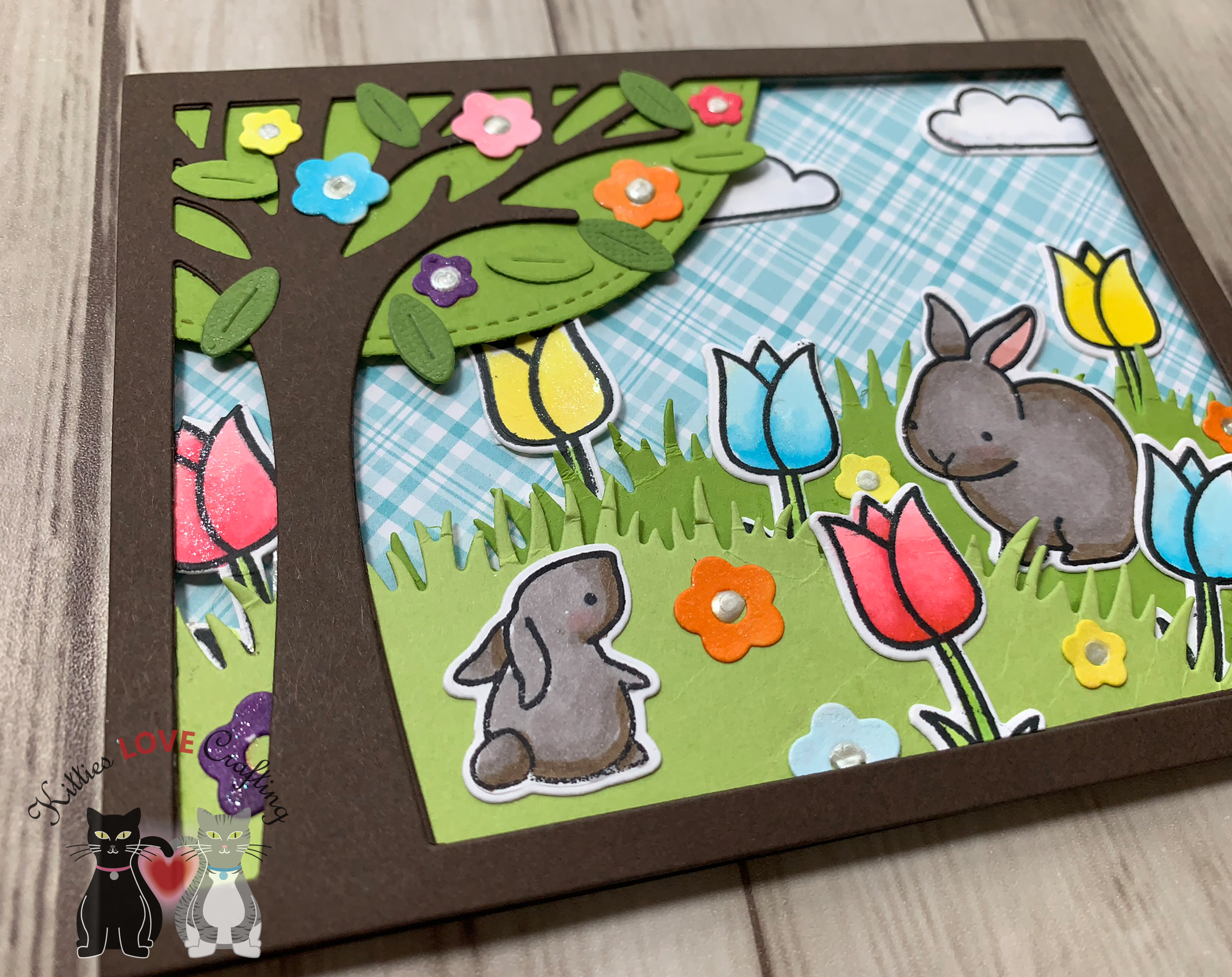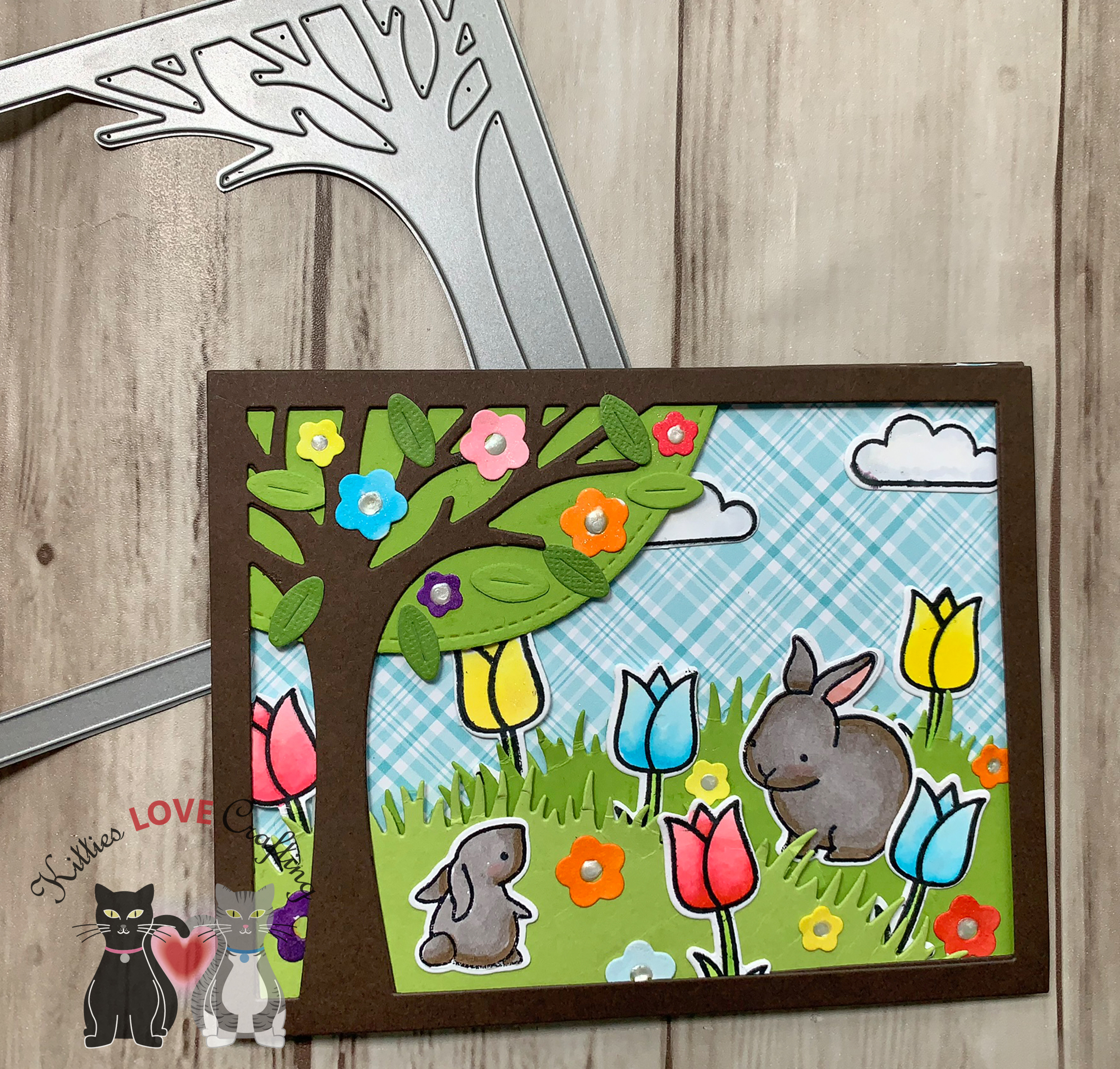 I used an older Lawn Fawn stampset, Hello Baby, which is meant for baby cards and used it for a Spring scene instead. Lawn Fawn stamps are great because you can combine different stampsets and they look like they belong together.